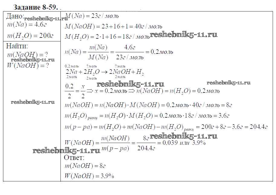 Готовая домашняя работа с ответами по Химии за 9 класс Кузнецова, Левкин Задачник Алгоритм успеха Вентана-граф 2015 ФГОС - Глава №8. Металлы 8-59