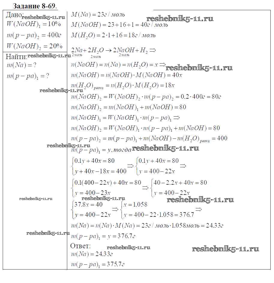 Готовая домашняя работа с ответами по Химии за 9 класс Кузнецова, Левкин Задачник Алгоритм успеха Вентана-граф 2015 ФГОС - Глава №8. Металлы 8-69