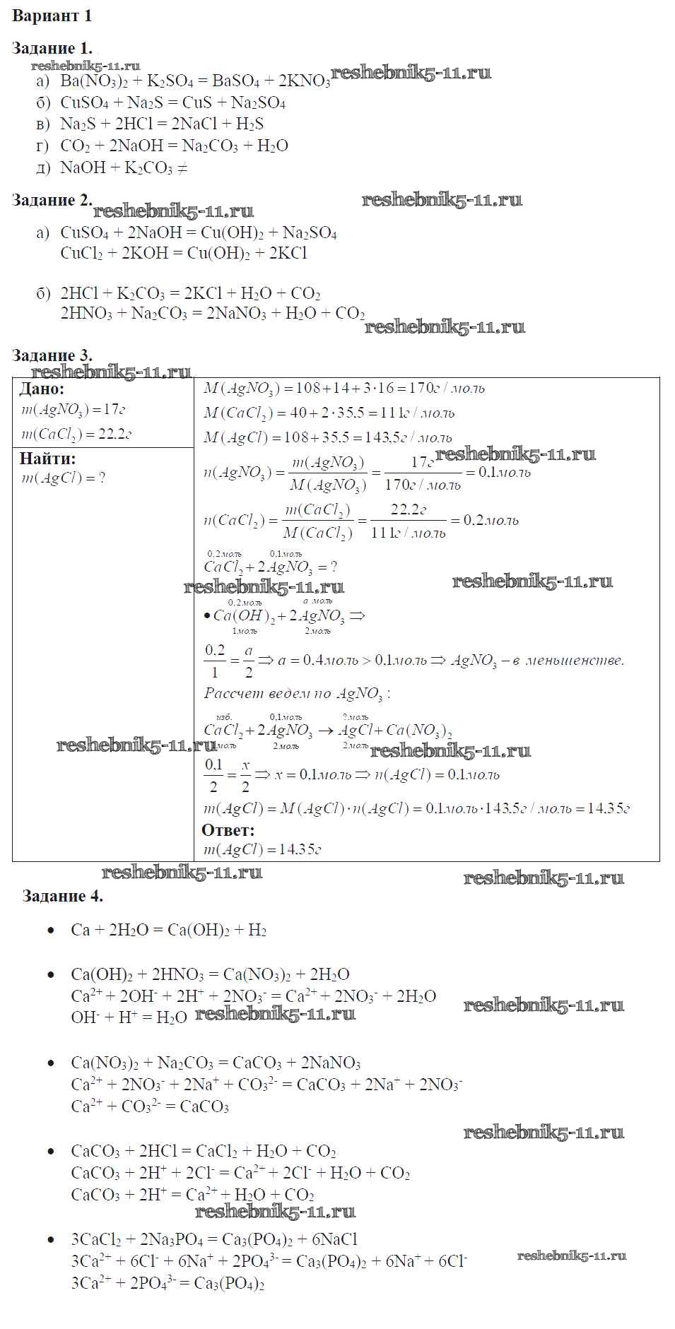 Готовая домашняя работа с ответами по Химии за 9 класс Кузнецова, Левкин Задачник Алгоритм успеха Вентана-граф 2015 ФГОС - Глава 2 вариант-1
