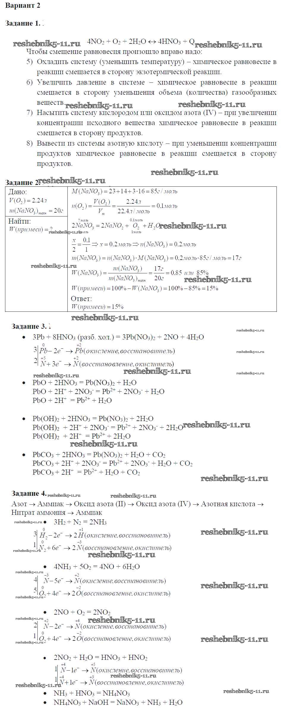 Готовая домашняя работа с ответами по Химии за 9 класс Кузнецова, Левкин Задачник Алгоритм успеха Вентана-граф 2015 ФГОС - Глава 4 вариант-2
