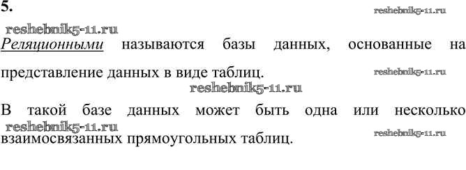 Готовая домашняя работа с ответами по Информатике за 9 класс Босова, Босова Учебник Бином 2017 ФГОС - §1.5. База данных как модель предметной области 5