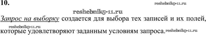 Готовая домашняя работа с ответами по Информатике за 9 класс Босова, Босова Учебник Бином 2017 ФГОС - §1.6. Система управления базами данных 10