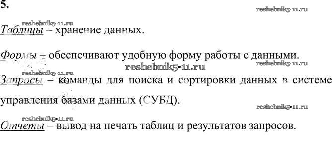 Готовая домашняя работа с ответами по Информатике за 9 класс Босова, Босова Учебник Бином 2017 ФГОС - §1.6. Система управления базами данных 5