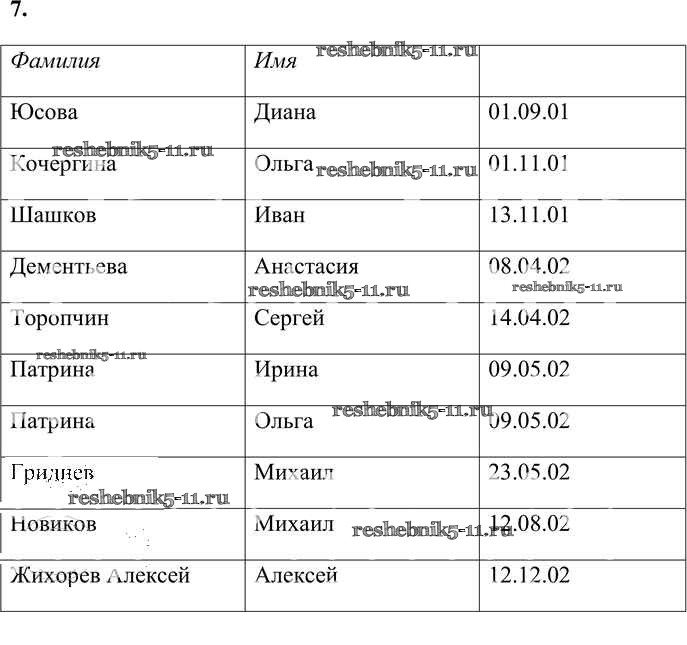 Готовая домашняя работа с ответами по Информатике за 9 класс Босова, Босова Учебник Бином 2017 ФГОС - §1.6. Система управления базами данных 7