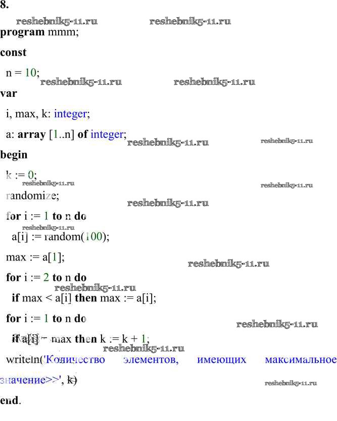 Готовая домашняя работа с ответами по Информатике за 9 класс Босова, Босова Учебник Бином 2017 ФГОС - §2.2. Одномерные массивы целых чисел 8