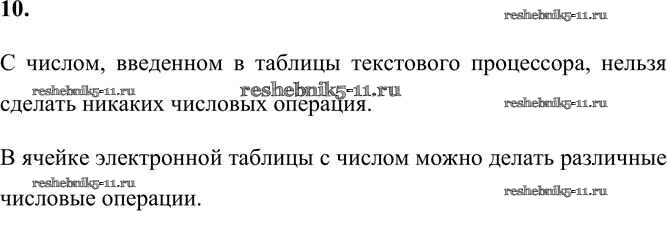 Готовая домашняя работа с ответами по Информатике за 9 класс Босова, Босова Учебник Бином 2017 ФГОС - §3.1. Электронные таблицы 10