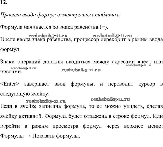Готовая домашняя работа с ответами по Информатике за 9 класс Босова, Босова Учебник Бином 2017 ФГОС - §3.1. Электронные таблицы 12