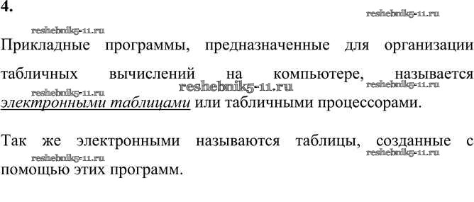 Готовая домашняя работа с ответами по Информатике за 9 класс Босова, Босова Учебник Бином 2017 ФГОС - §3.1. Электронные таблицы 4