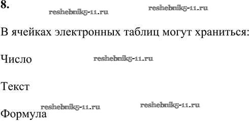 Готовая домашняя работа с ответами по Информатике за 9 класс Босова, Босова Учебник Бином 2017 ФГОС - §3.1. Электронные таблицы 8