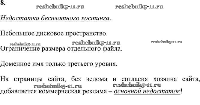Готовая домашняя работа с ответами по Информатике за 9 класс Босова, Босова Учебник Бином 2017 ФГОС - §4.4. Создание веб-сайта 8