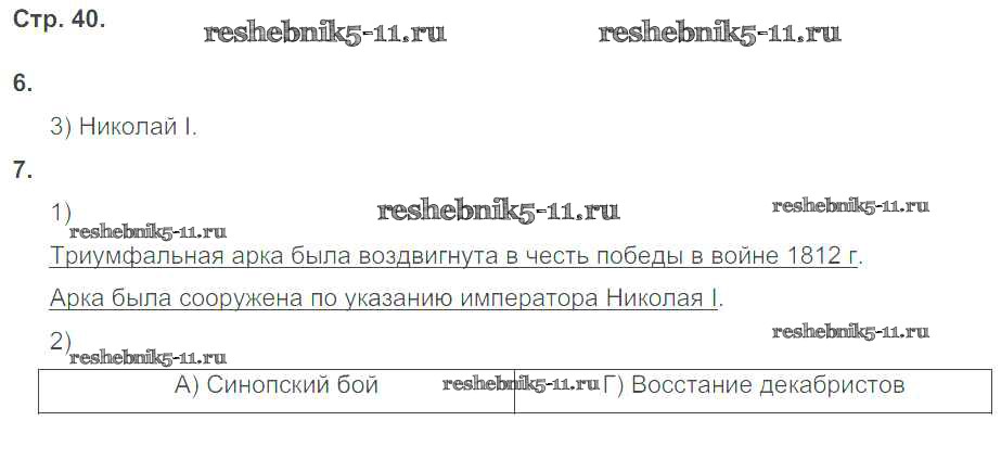 Готовая домашняя работа с ответами по Истории за 9 класс Гевуркова Рабочая тетрадь УМК Экзамен 2019 ФГОС - Страницы 40