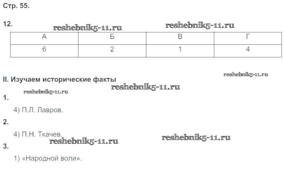 Готовая домашняя работа с ответами по Истории за 9 класс Гевуркова Рабочая тетрадь УМК Экзамен 2019 ФГОС - Страницы 55