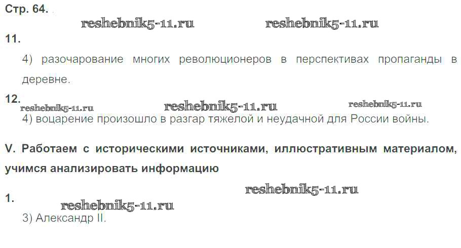 Готовая домашняя работа с ответами по Истории за 9 класс Гевуркова Рабочая тетрадь УМК Экзамен 2019 ФГОС - Страницы 64