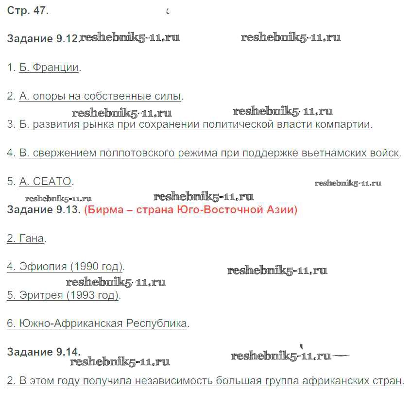 Готовая домашняя работа с ответами по Истории за 9 класс Пономарев Рабочая тетрадь УМК Экзамен 2016 ФГОС - Страницы 47