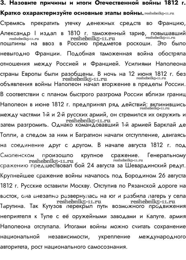 Готовая домашняя работа с ответами по Истории за 9 класс Арсентьев, Данилов, Левандовский Учебник Часть 1, 2 Просвещение 2016 ФГОС - Повторяем и делаем выводы 3