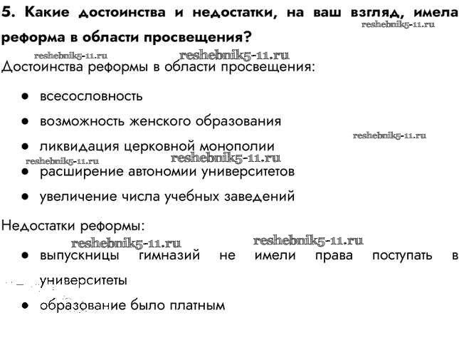 Готовая домашняя работа с ответами по Истории за 9 класс Арсентьев, Данилов, Левандовский Учебник Часть 1, 2 Просвещение 2016 ФГОС - Думаем, сравниваем, размышляем 5
