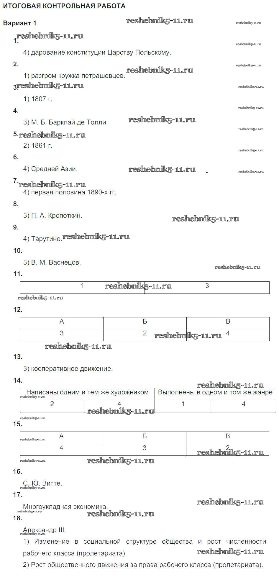 Готовая домашняя работа с ответами по Истории за 9 класс Артасов, Войцик Тематический контроль Национальное образование 2019 ФГОС - Итоговая контрольная работа Вариант 1