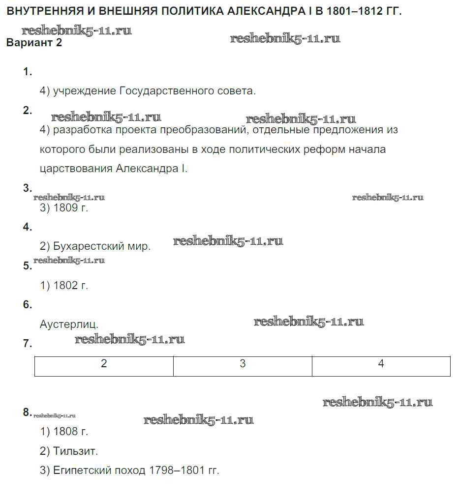 Решебник / Российская империя в первой половине XIX века / ср-1. вариант / 2