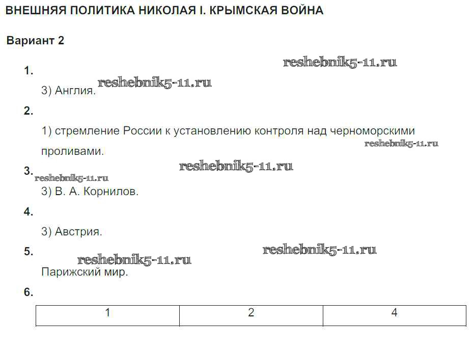 Решебник / Российская империя в первой половине XIX века / ср-5. вариант / 2
