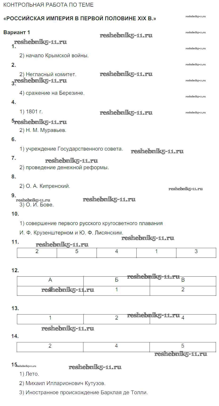 Решебник / Российская империя в первой половине XIX века / кр. вариант / 1