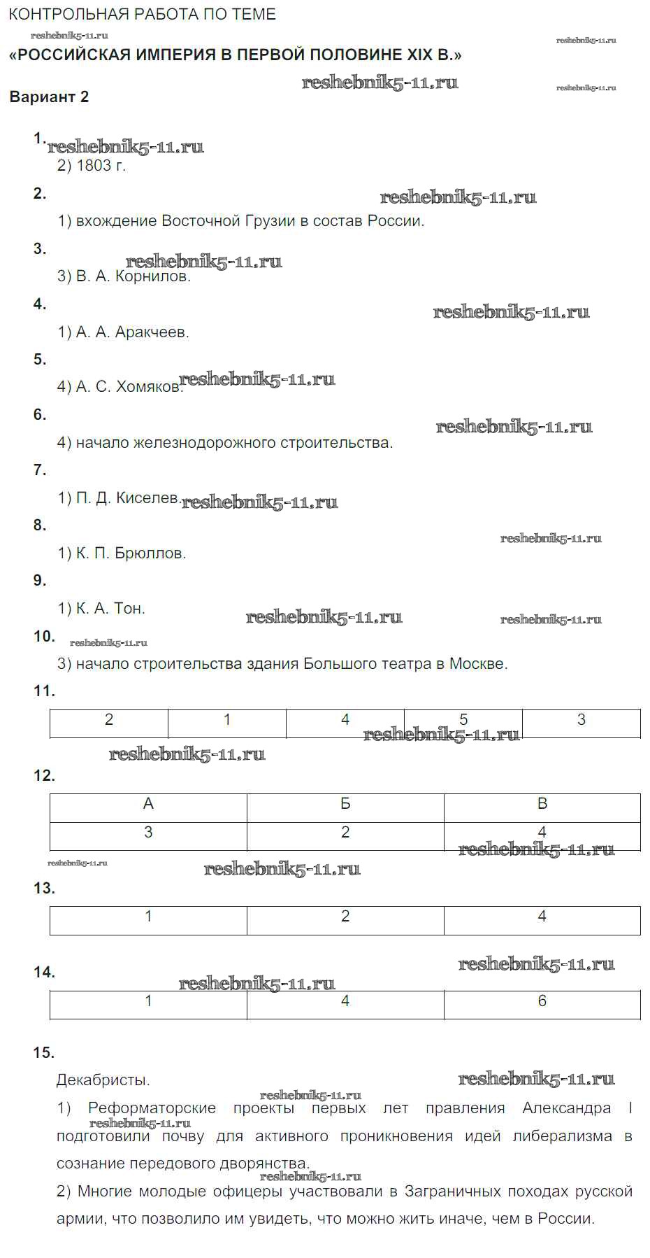 Решебник / Российская империя в первой половине XIX века / кр. вариант / 2