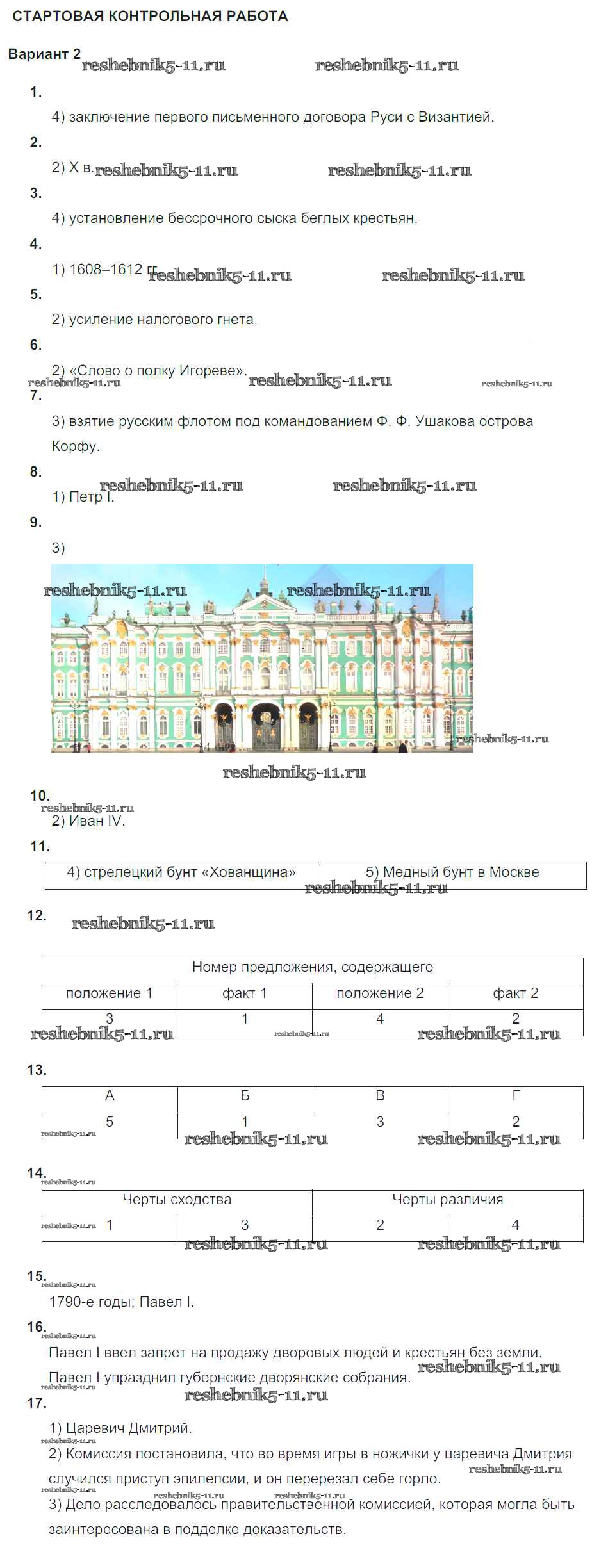 Готовая домашняя работа с ответами по Истории за 9 класс Артасов, Войцик Тематический контроль Национальное образование 2019 ФГОС - Стартовая контрольная работа 2
