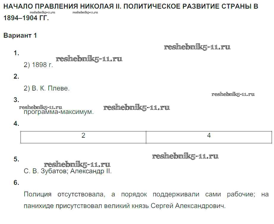Решебник / Россия в 1894–1914 гг. / ср-1. вариант / 1