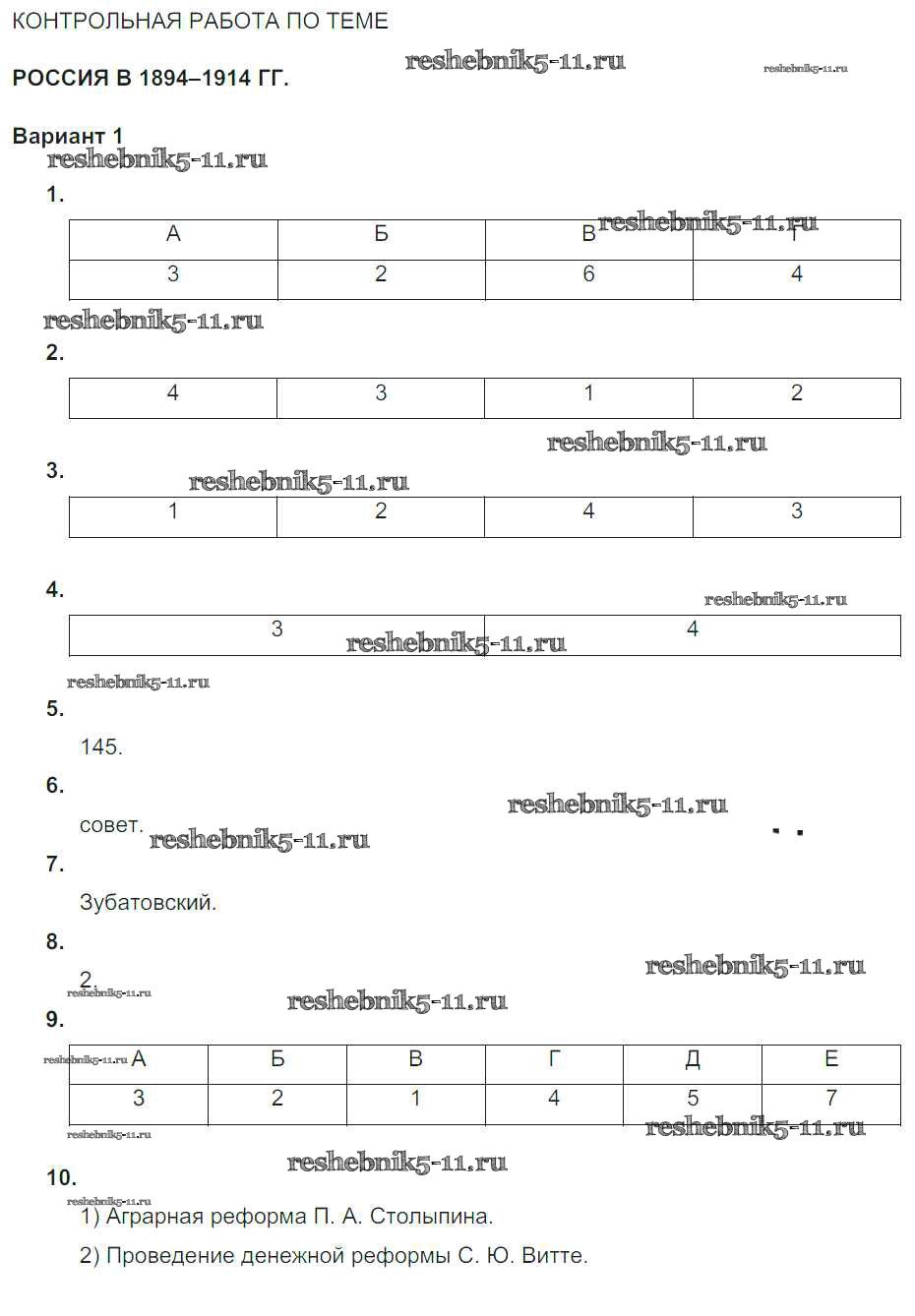 Решебник / Россия в 1894–1914 гг. / кр. вариант / 1