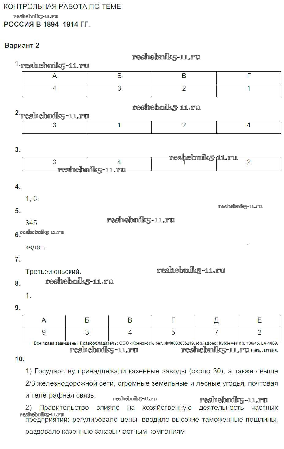 Решебник / Россия в 1894–1914 гг. / кр. вариант / 2