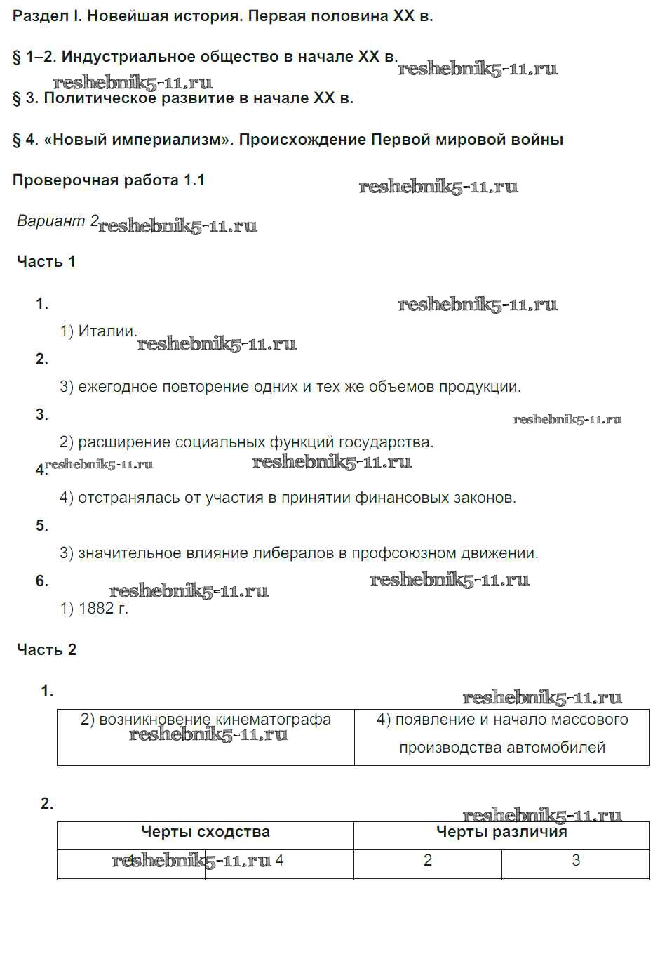 Готовая домашняя работа с ответами по Истории за 9 класс Баранов Проверочные и контрольные работы Просвещение 2015 ФГОС - Параграфы 1-4 2