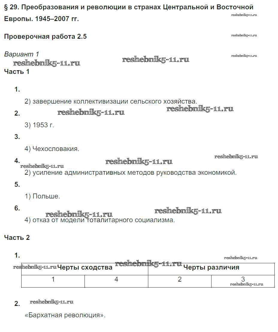 Готовая домашняя работа с ответами по Истории за 9 класс Баранов Проверочные и контрольные работы Просвещение 2015 ФГОС - Параграфы 29 1