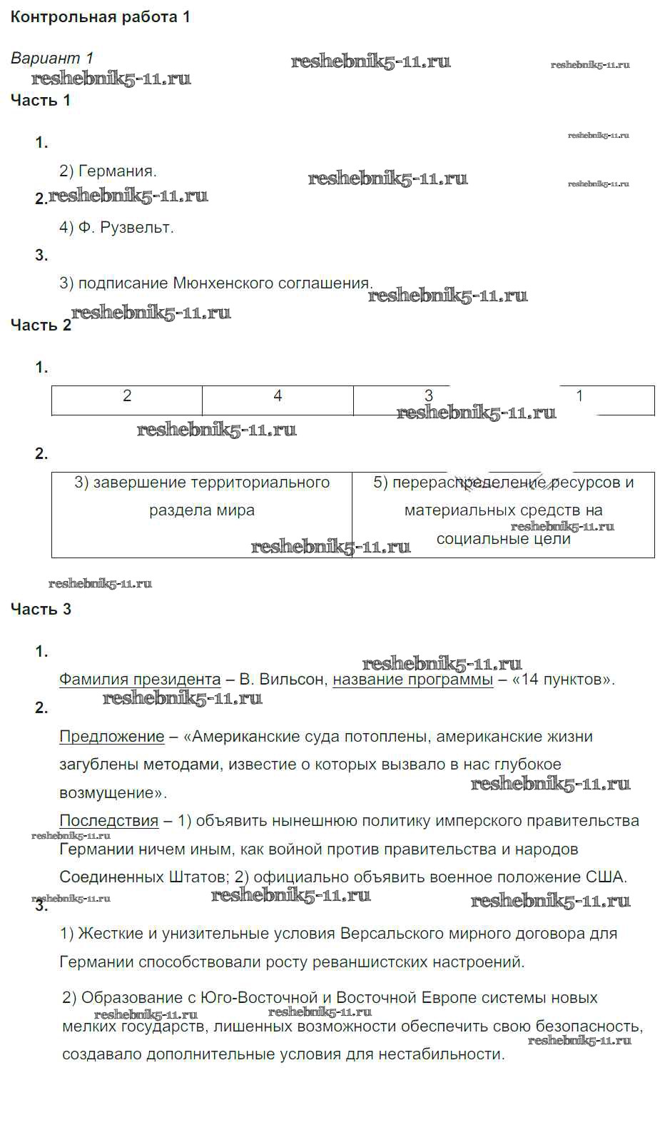 Готовая домашняя работа с ответами по Истории за 9 класс Баранов Проверочные и контрольные работы Просвещение 2015 ФГОС - КР-1. Варианты 1