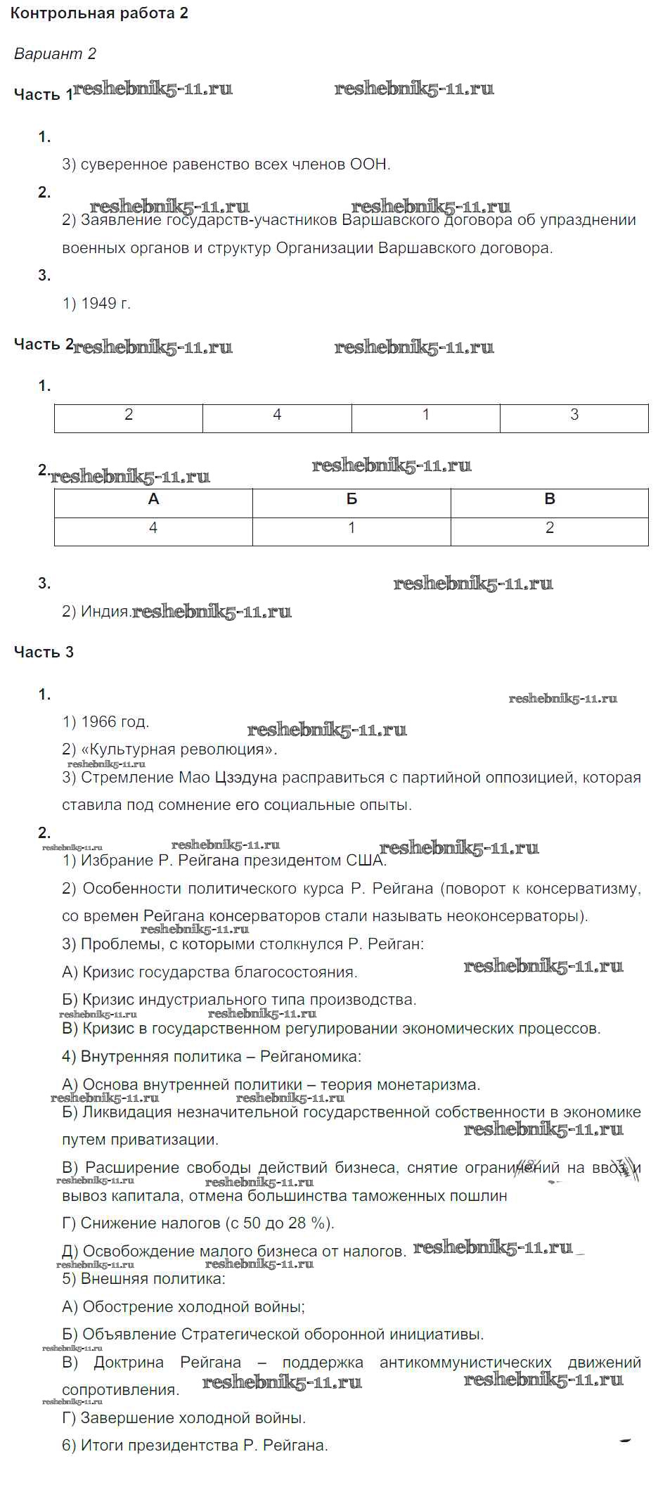 Готовая домашняя работа с ответами по Истории за 9 класс Баранов Проверочные и контрольные работы Просвещение 2015 ФГОС - КР-2. Варианты 2