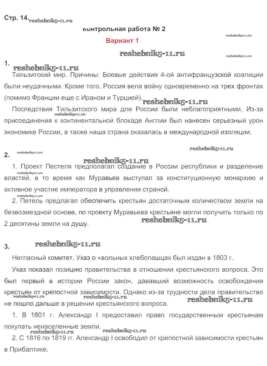 Готовая домашняя работа с ответами по Истории за 9 класс Артасов Контрольные работы УМК Просвещение 2017 ФГОС - Страницы 14
