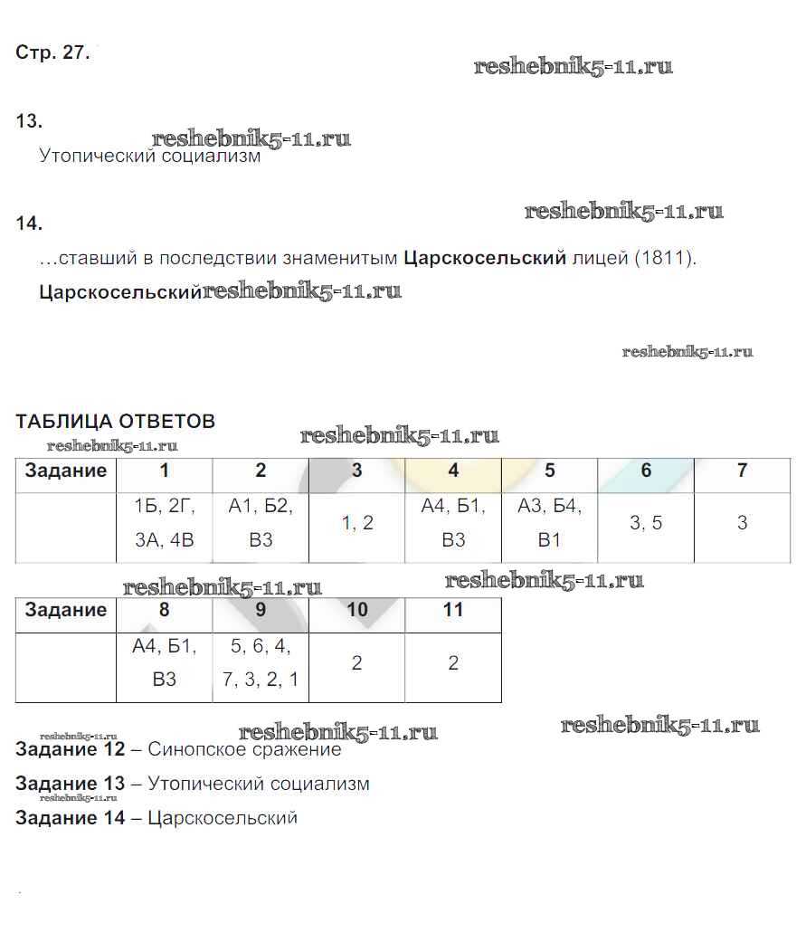 Готовая домашняя работа с ответами по Истории за 9 класс Артасов Контрольные работы УМК Просвещение 2017 ФГОС - Страницы 27