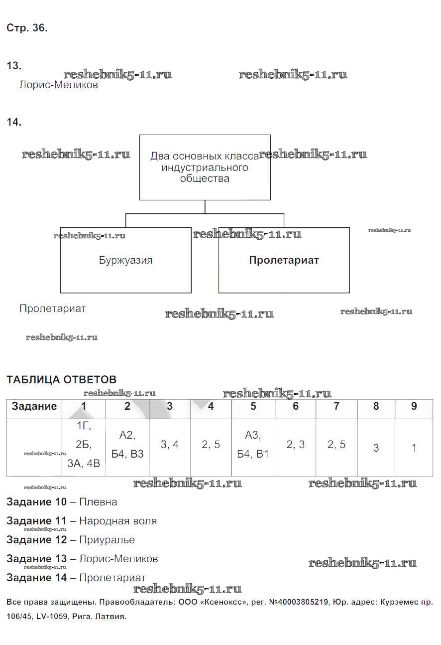 Готовая домашняя работа с ответами по Истории за 9 класс Артасов Контрольные работы УМК Просвещение 2017 ФГОС - Страницы 36