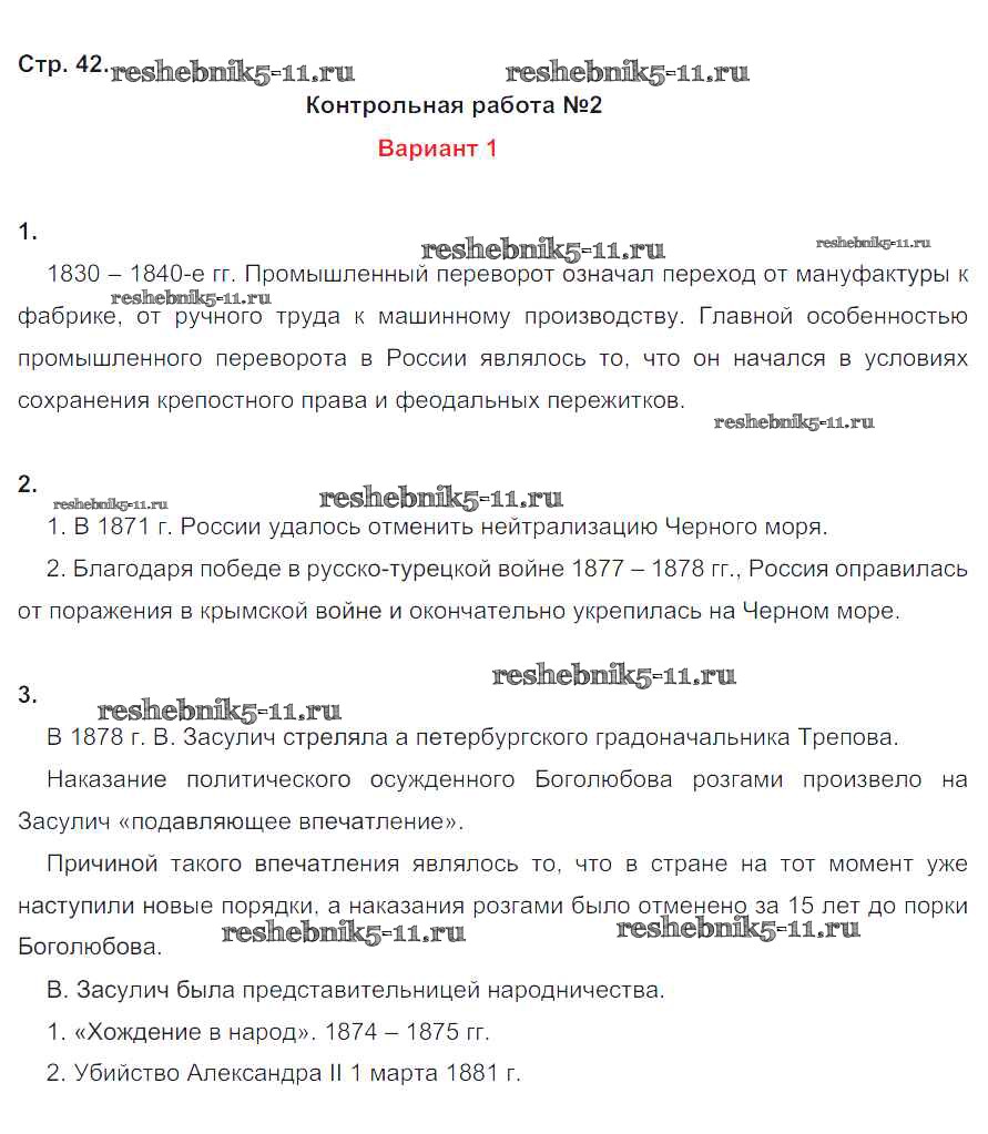 Готовая домашняя работа с ответами по Истории за 9 класс Артасов Контрольные работы УМК Просвещение 2017 ФГОС - Страницы 42