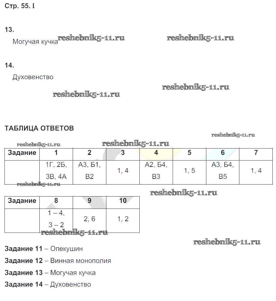 Готовая домашняя работа с ответами по Истории за 9 класс Артасов Контрольные работы УМК Просвещение 2017 ФГОС - Страницы 55