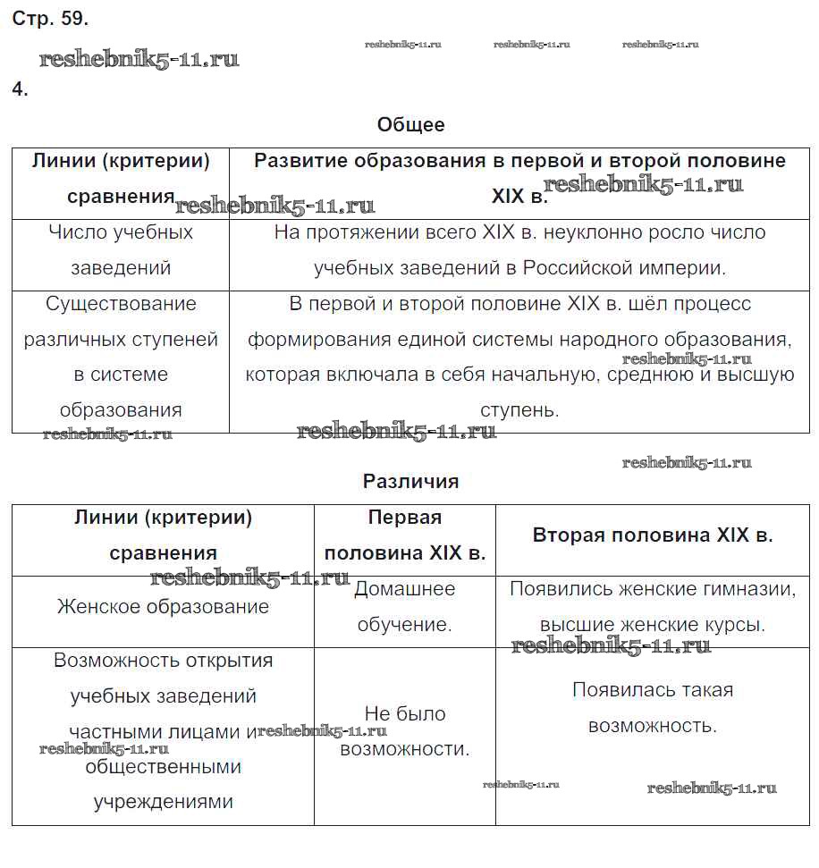 Готовая домашняя работа с ответами по Истории за 9 класс Артасов Контрольные работы УМК Просвещение 2017 ФГОС - Страницы 59
