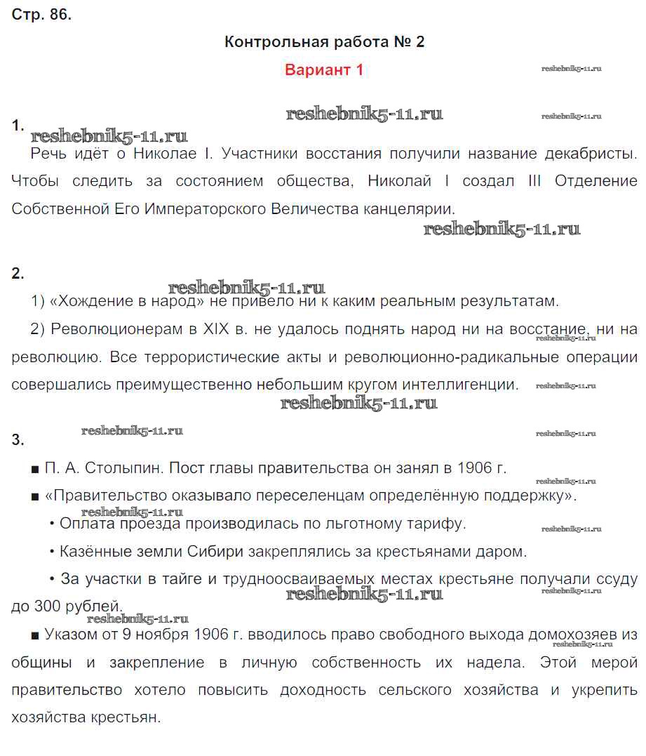 Готовая домашняя работа с ответами по Истории за 9 класс Артасов Контрольные работы УМК Просвещение 2017 ФГОС - Страницы 86