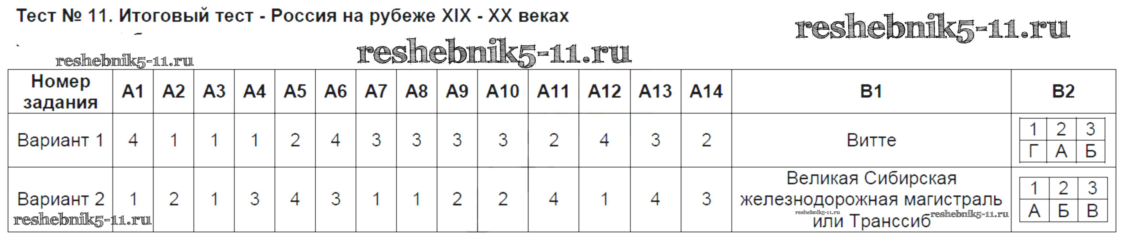 Готовая домашняя работа с ответами по Истории за 9 класс Волкова Контрольно-измерительные материалы (КИМ) ВАКО 2017 ФГОС - Тесты 11