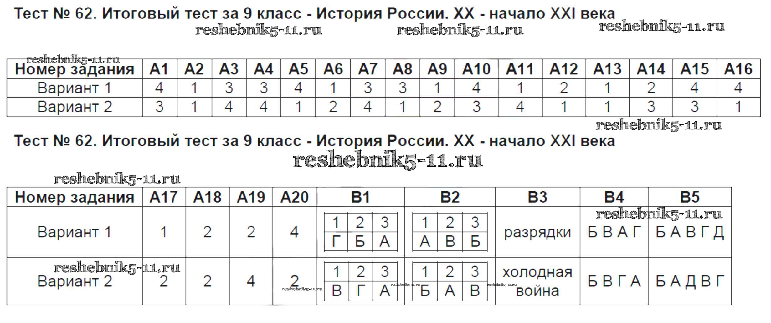 Готовая домашняя работа с ответами по Истории за 9 класс Волкова Контрольно-измерительные материалы (КИМ) ВАКО 2017 ФГОС - Тесты 62