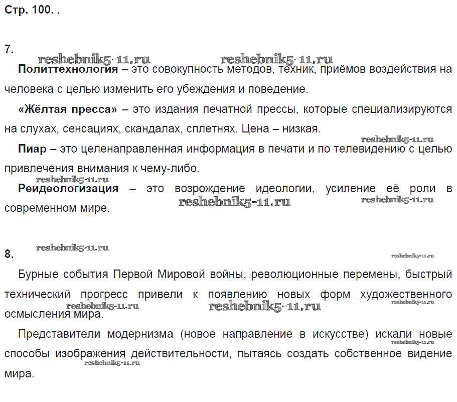 Готовая домашняя работа с ответами по Истории за 9 класс Ермакова Рабочая тетрадь Инновационная школа Русское слово 2016 ФГОС - Страницы 100
