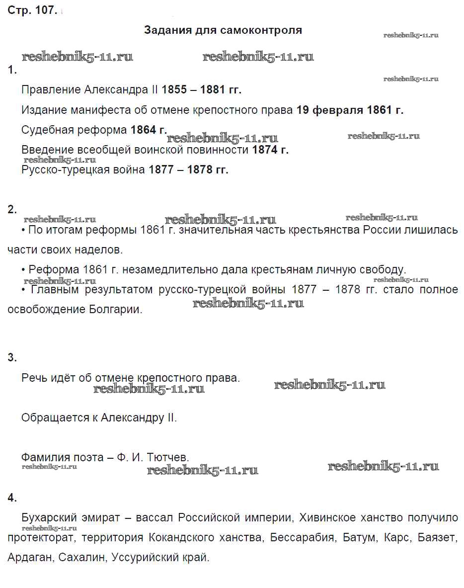Готовая домашняя работа с ответами по Истории за 9 класс Данилов, Косулина, Лукутин, Макарова Рабочая тетрадь УМК Часть 1, 2 Просвещение 2017 ФГОС - Часть 1. Страницы 107