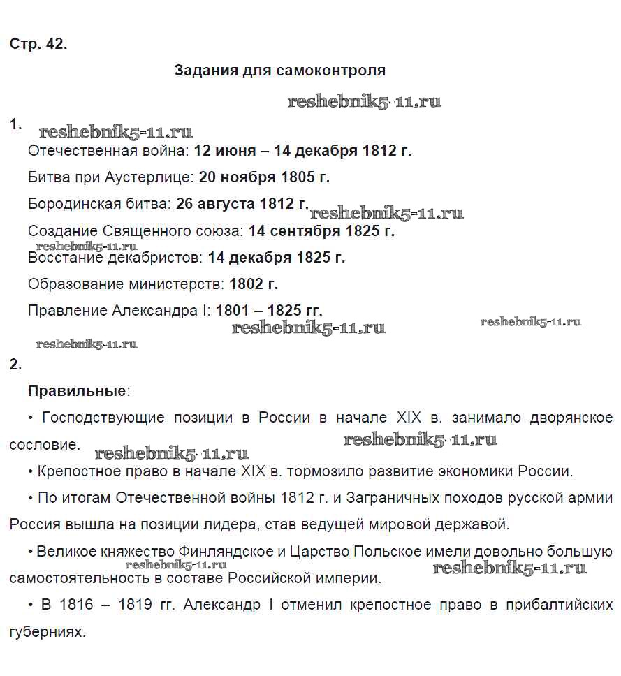 Готовая домашняя работа с ответами по Истории за 9 класс Данилов, Косулина, Лукутин, Макарова Рабочая тетрадь УМК Часть 1, 2 Просвещение 2017 ФГОС - Часть 1. Страницы 42