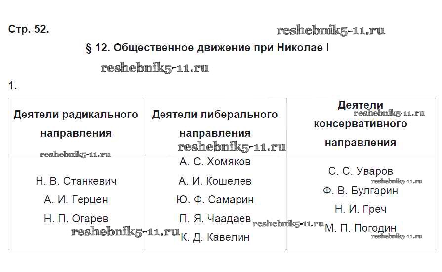 Готовая домашняя работа с ответами по Истории за 9 класс Данилов, Косулина, Лукутин, Макарова Рабочая тетрадь УМК Часть 1, 2 Просвещение 2017 ФГОС - Часть 1. Страницы 52
