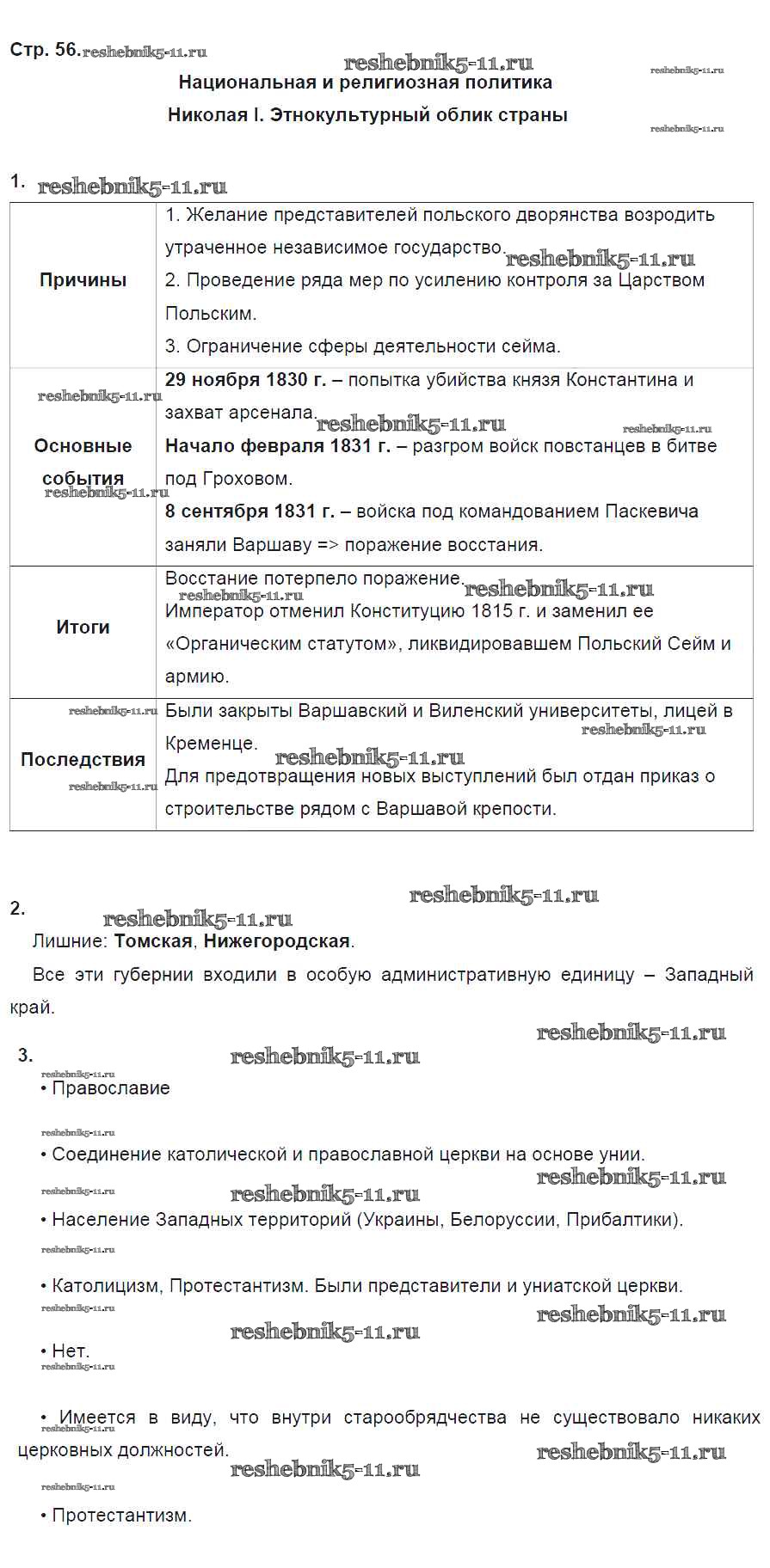 Готовая домашняя работа с ответами по Истории за 9 класс Данилов, Косулина, Лукутин, Макарова Рабочая тетрадь УМК Часть 1, 2 Просвещение 2017 ФГОС - Часть 1. Страницы 56