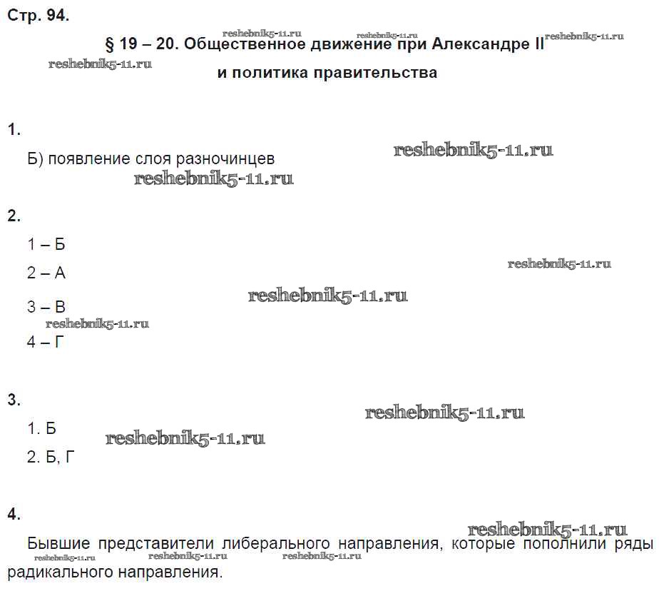 Готовая домашняя работа с ответами по Истории за 9 класс Данилов, Косулина, Лукутин, Макарова Рабочая тетрадь УМК Часть 1, 2 Просвещение 2017 ФГОС - Часть 1. Страницы 94