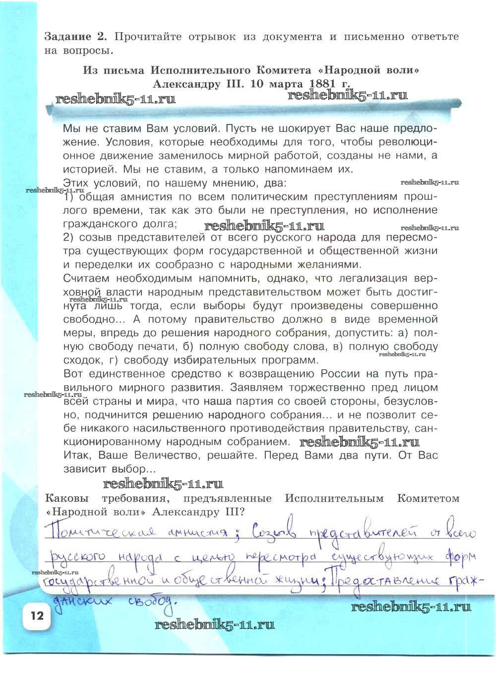 Готовая домашняя работа с ответами по Истории за 9 класс Данилов, Косулина, Лукутин, Макарова Рабочая тетрадь УМК Часть 1, 2 Просвещение 2017 ФГОС - Часть 2. Страницы 12