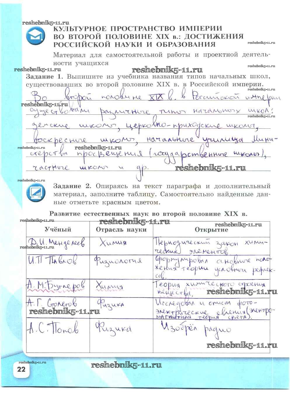 Готовая домашняя работа с ответами по Истории за 9 класс Данилов, Косулина, Лукутин, Макарова Рабочая тетрадь УМК Часть 1, 2 Просвещение 2017 ФГОС - Часть 2. Страницы 22